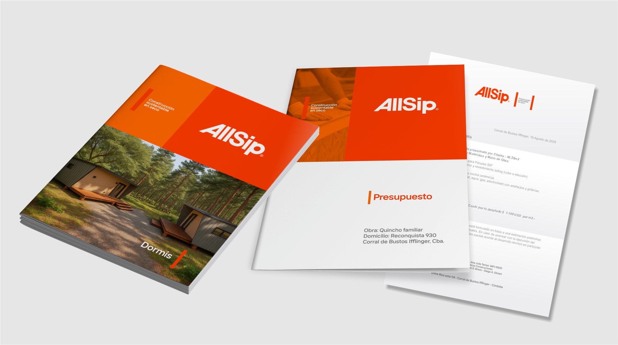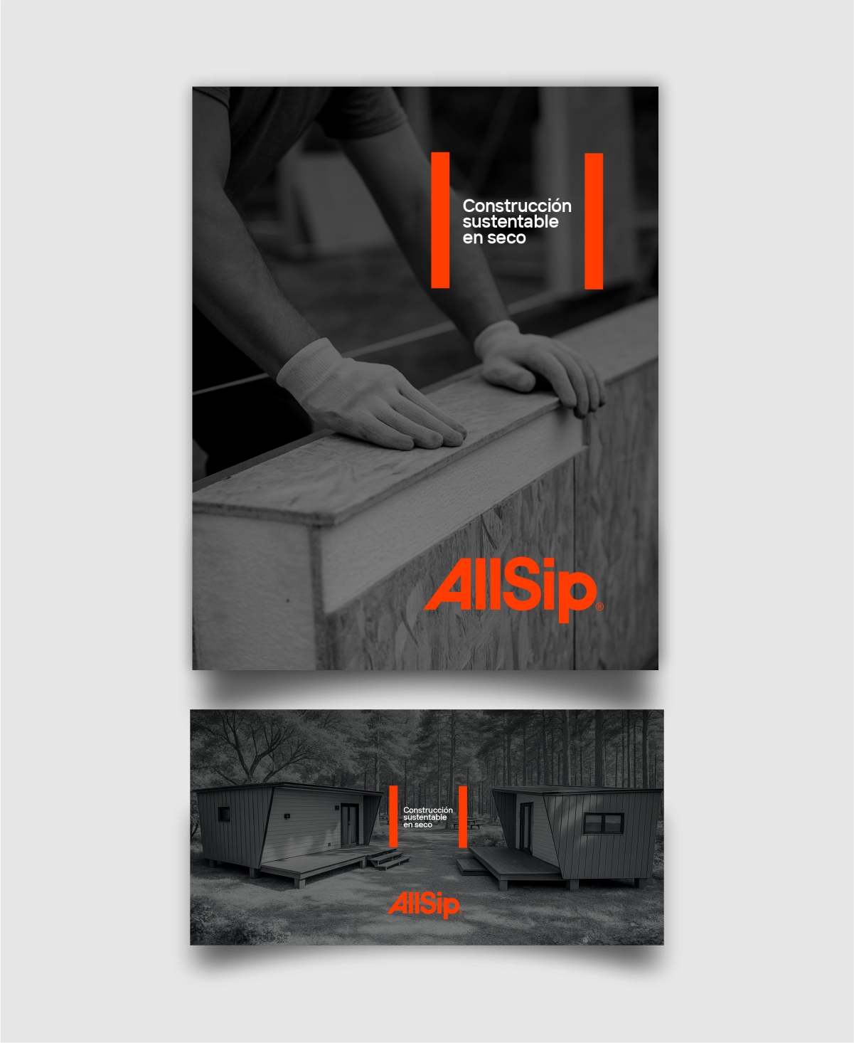 El logotipo de AllSip se construye a partir de una tipografía contundente, estable y altamente legible, cualidades que reflejan solidez, precisión y confianza, pilares fundamentales en el sistema de construcción en seco con paneles SIP.